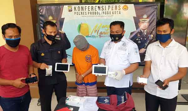 Kasat Reskrim Polres Probolinggo Kota, AKP Heri Sugiono menjelaskan, pelaku beraksi Kamis (2/7/2020) sekitar pukul 09.30, di konter HP milik Wahyu Sucahjo di Jl Mastrip Kelurahan Kanigaran, Kecamatan Kanigaran, Kota Probolinggo. Pelaku masuk konter dengan merusak jendela konter, pelaku leluasa menggasak ponsel dan tablet berbagai merk, beserta memori eksternal.