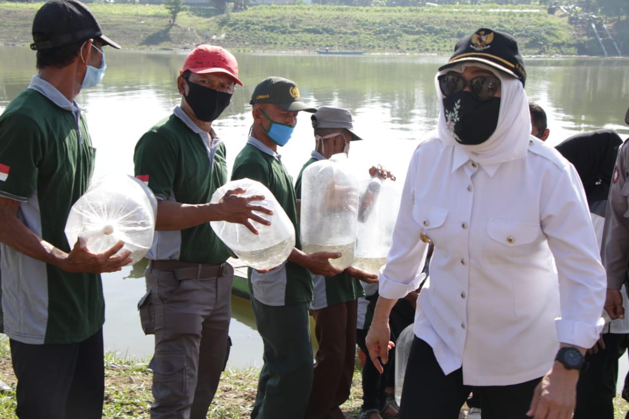 KLIKJATIM.Com | Bojonegoro - Bupati Bojonegoro, Anna Muawanah ingin 'menyulap' desa-desa yang berada di sepanjang bantaran sungai Bengawan Solo menjadi wisata lokal berbasis kerakyatan. Hal itu disampaikan langsung saat berkunjung ke Desa Kabalan, Kecamatan Kanor, untuk menyerahkan bantuan 25 ribu ekor benih ikan kepada kelompok tani ternak dan nelayan, Rabu (8/7/2020).