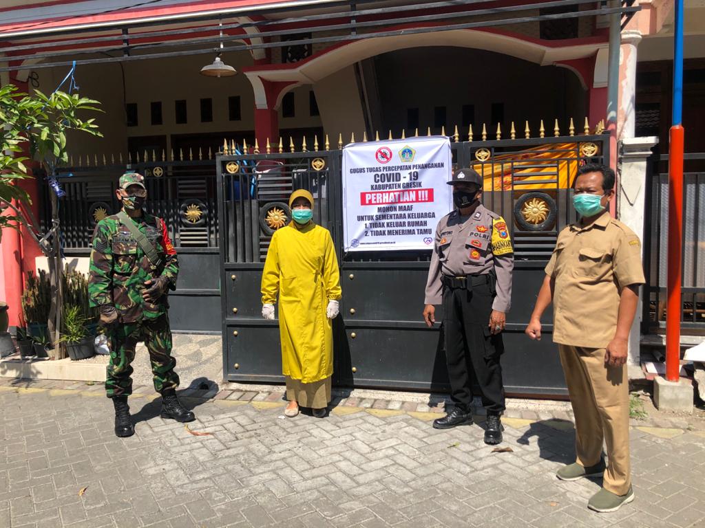 KLIKJATIM.Com | Gresik - Satu orang terkonfirmasi positif Covid-19 di Gresik enggan melakukan karantina mandiri. Dia terlihat sering keluyuran keluar rumah. Dan akhirnya Gugus Tugas setempat memasang Spanduk peringatan di rumahnya.