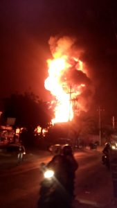 Kobaran api terlihat membumbung tinggi sekitar 400 meter dari lokasi kebakaran.[/caption]