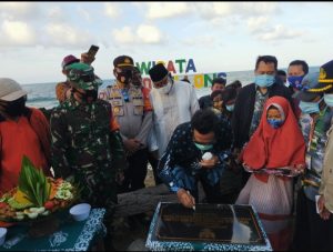Wabup Qosim menandatangani prasasti peresmian wisata Betu Cellong di Desa Tanjungori, Kecamatan Tambak, Gresik. (Koinul M/klikjatim.com)[/caption]