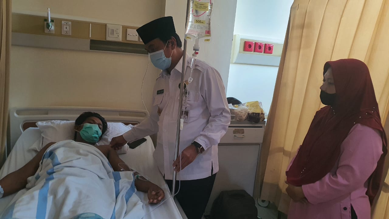 KLIKJATIM.Com | Gresik - Wabup Gresik Moh Qosim membesuk sekalian memberikan santunan kepada Arfawi (36) asal Bawean. Pasien RSUD Ibnu Sina itu mengalami insiden ditendang sapi saat menjadi panitia qurban di Desa Sukaoneng, Kecamatan Tambak, Bawean, Gresik..