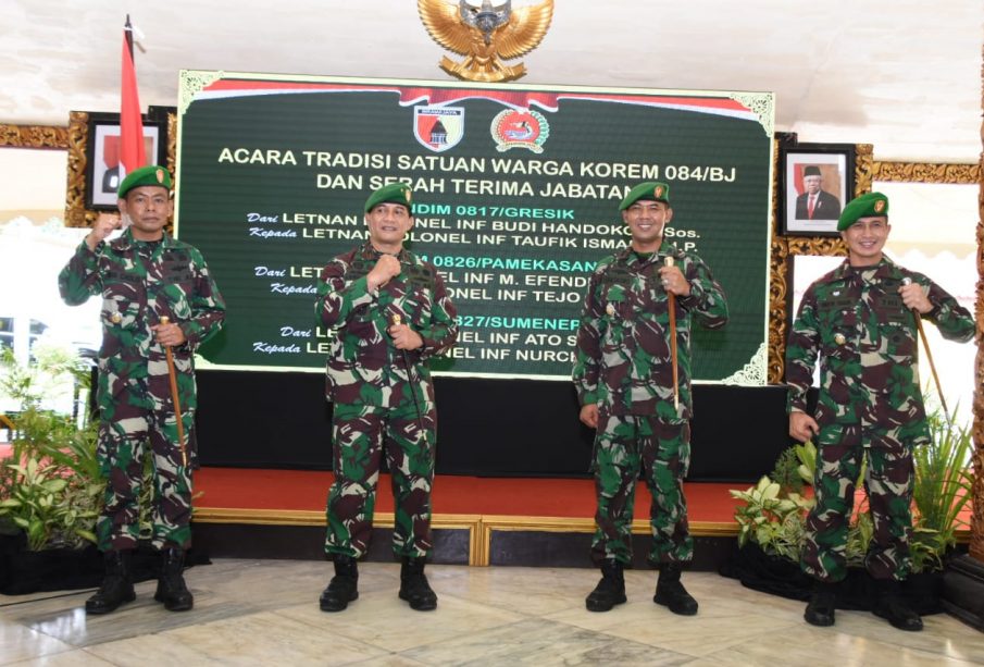 Ketiga jabatan dandim yang diserahterimakan itu masing-masing Dandim 0826/Pamekasan dari Letkol Inf M Effendi M,S,S.I.P kepada Letkol Inf Tejo Baskoro. Kemudian Dandim 0827/Sumenep dari Letkol Inf Ato Sudiatna kepada Letkol Inf Nurcholis, A.md. Serta Dandim 0817/Gresik dari Letkol Inf Budi Handoko S.sos kepada Letkol Inf Taufik Ismail, S.I.P.