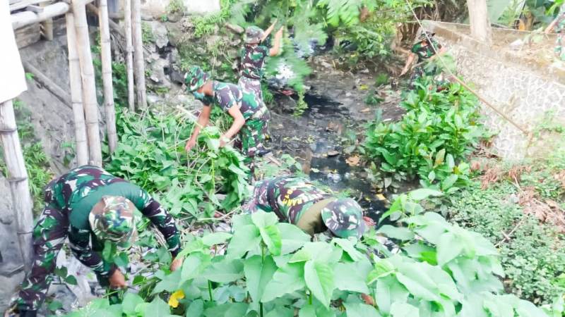 Kegiatan ini dilakukan dalam rangka Karya Bhakti bersama dengan kegiatan normalisasi sungai. Puluhan anggota TNI ini nyemplung sungai sepanjang 3,7 kilometer.