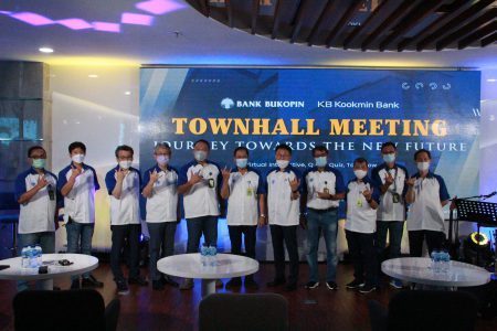 KLIKJATIM.Com | Sidoarjo - Jajaran manajemen baru Bank Bukopin, diperkenalkan dalam “Townhall Meeting” yang dilaksanakan Jumat, Pukul 16.00 WIB sekaligus menandai sekitar 6.000 karyawan Bank Bukopin bergabung ke dalam Keluarga besar KB Kookmin Bank.