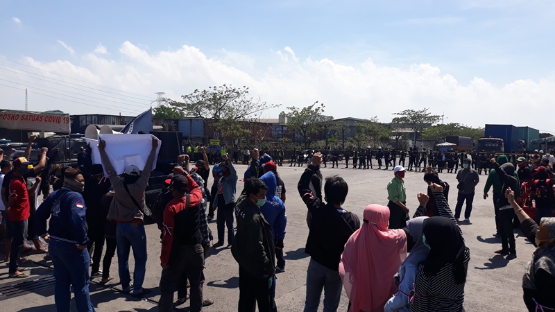 "Kami minta juga sistem outsorching dihapuskan, khususnya bagi warga Desa Sukomulyo," kata orator aksi, Abdul Wahab, Selasa (8/9/2020).
