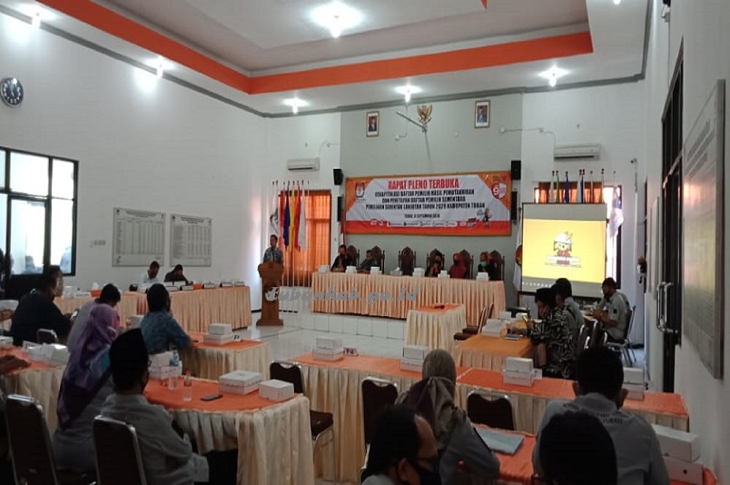 KLIKJATIM.Com | Tuban - Komisi Pemilihan Umum Kabupaten (KPUK) Tuban resmi menetapkan Daftar Pemilih Sementara (DPS) pemilihan kepala daerah (Pilkada) 2020 sebanyak 946.351 jiwa. Penetapan tersebut diputuskan melalui rapat pleno terbuka di Aula kantor KPUK pada Minggu (13/9/2020).