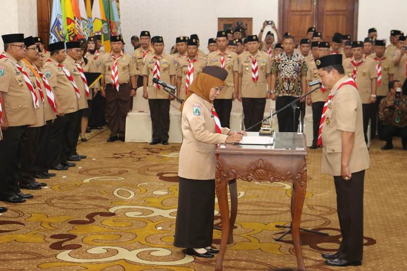 Penandatanganan itu disaksikan langsung oleh Ketua Kwartir Nasional Gerakan Pramuka, Komjen Pol (Purn) Budi Waseso. Bersamaan dengan agenda pelantikan Ketua Majelis Pembimbing Daerah (Mabida) Gerakan Pramuka Jatim masa bakti 2019-2024, Khofifah Indar Parawansa di Gedung Negara Grahadi, Surabaya, Jumat (9/8/2019).