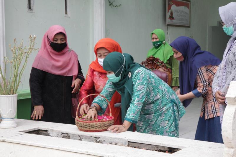 Saat berziarah, Dwi Astutik didampingi pengurus Muslimat Sidoarjo, ke makam pendiri NU yang biasa dikenal dengan sebutan Mbah Wahab ini.