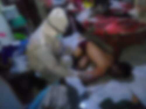 Tim medis melakukan pemeriksaan lengkap dengan protokol kesehatan Covid-19. Menggunakan APD lengkap.