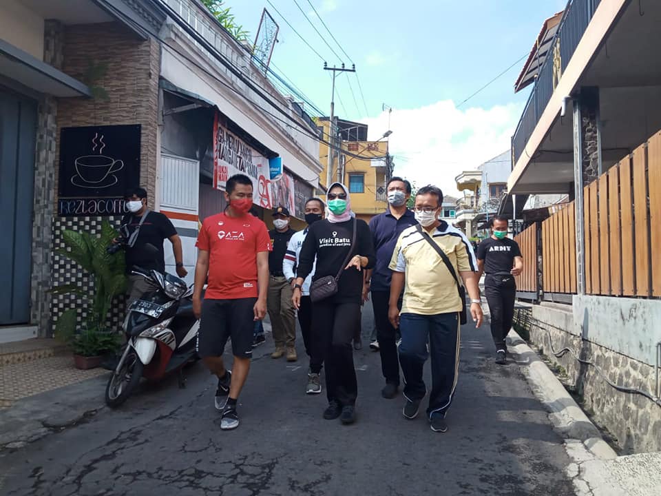Dan usai menerima tamu lainnya, Wali Kota kemudian mengajak puluhan bos media siber di Jatim ini berjalan kaki. Awalnya mereka mengira jalan kaki dari rumah dinas wali kota menuju rumah makan. Ternyata tidak, rute sejauh 3 Km sudah disiapkan oleh bu wali yang pagi itu mengenakan kaos bertuliskan Visi Batu, dan bawahan celana kasual warna hitam juga.