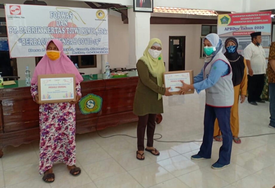 Bekerjasama dengan PT. Pabrik Kertas Tjiwi Kimia Tbk, anggota Forwas dari berbagai media cetak, TV, maupun online membagi 250 paket sembako plus masker kepada warga Desa Ngampelsari, Kecamatan Candi Sidoarjo.