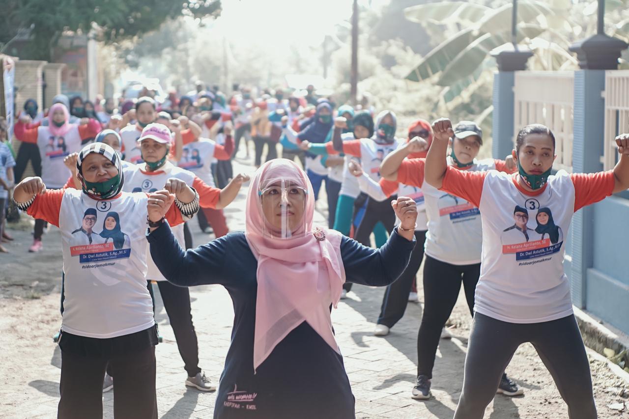 KLIKJATIM.Com I Sidoarjo - Warga Desa Sawocangkring, Kecamatan Wonoayu, Sidoarjo, meminta Paslon Nomor Urut 3, Kelana Aprilianto – Dwi Astutik mengatasi masalah pengangguran. Permintaan tersebut disampaikan Ayu Maslaka, perwakilan warga setempat kepada Dwi Astutik, saat menghadiri senam pagi warga Sawocangkring, Minggu, (8/11/2020).